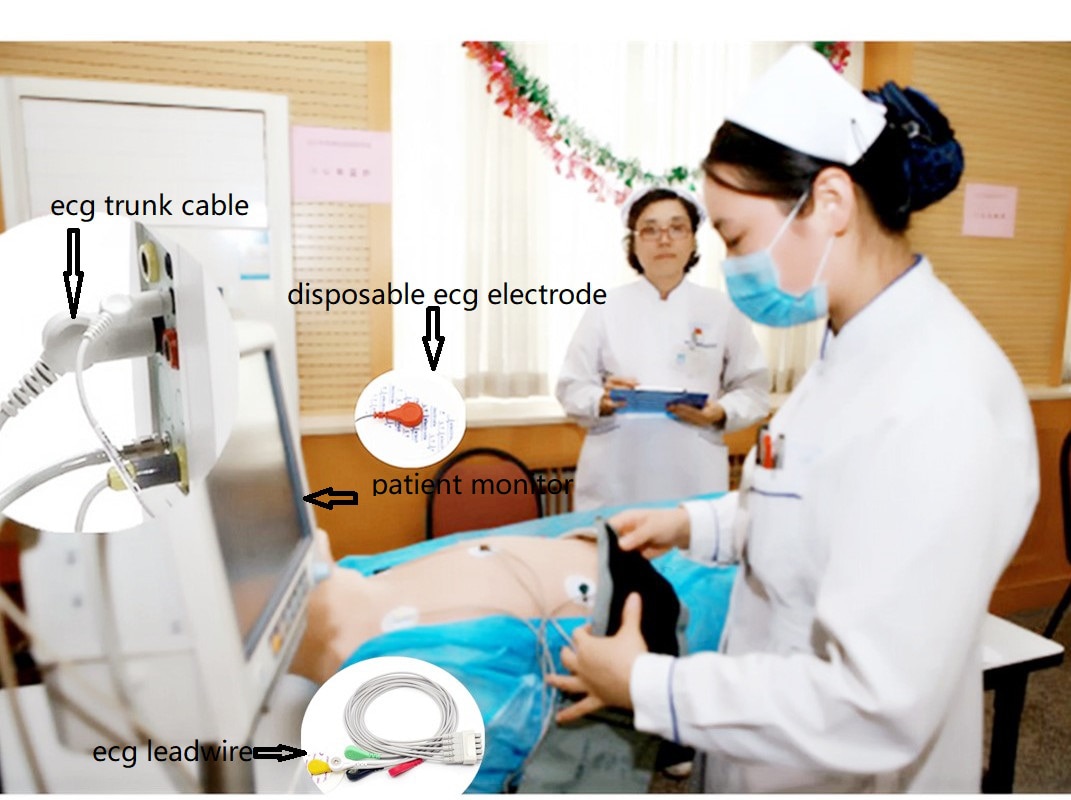 Fare domanda per monitor multiparametrico / macchina per elettrocardiogramma / esercizi tapis roulant o defibrillatore, trasmettere il segnale di bioelettricità del corpo umano. I cavi paziente e i conduttori dell'elettrodo vengono utilizzati per collegare elettrodi, cateteri e / o sensori posizionati in punti appropriati sul paziente a un dispositivo di monitoraggio per il monitoraggio generale e / o la valutazione diagnostica da parte di un operatore sanitario