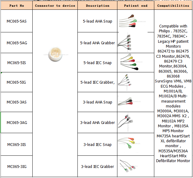 "Compatibile con Philips. 78352C, 78354C, 78834C , Monitor paziente HP legacy Monitor da 862472 a 862475 Monitor C3, 862478, 862479 Monitor C3, 863064, 863065, 863066, 863068 SureSigns VM6, moduli ECG VM8, M1001A / B, M1002A / B Multi- moduli di misura M3000A, M3001A, M3002A MMS X2, monitor M8102A MP2, monitor M8105A MP5 monitor defibrillatore heartStart XL M3535A / M3536A monitor defibrillatore HeartStart MRx "