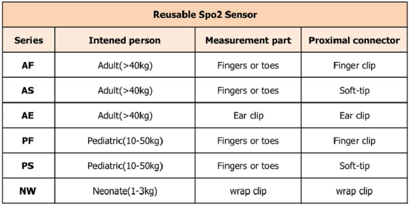 (AF&AS seriale) Il sensore spo2 riutilizzabile di ottima fattura è collegato al pulsossimetro compatibile per il monitoraggio continuo non invasivo della saturazione funzionale di ossigeno dell'emoglobina arteriosa (SpO2) e della frequenza del polso (PR) per pazienti adulti di peso superiore a 40 kg.